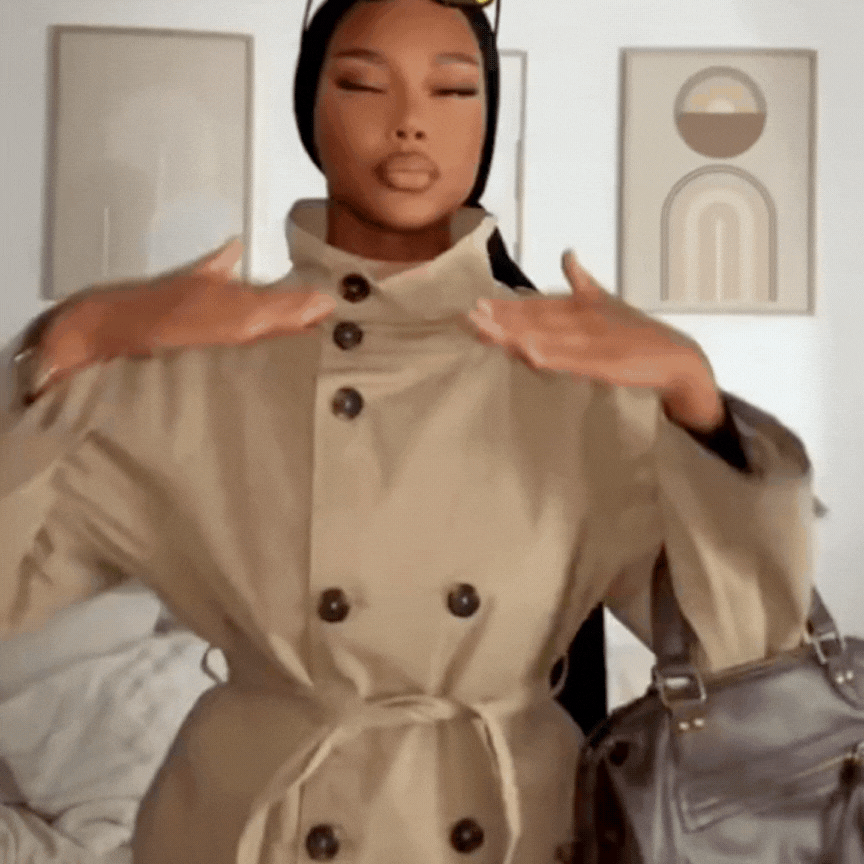 La doppia abbottonatura, la cintura in vita e il colletto alto non sono solo elementi estetici: definiscono la silhouette, valorizzano la figura e donano carattere al capo. Ogni dettaglio è pensato per offrirti versatilità, permettendoti di indossarlo in modi diversi a seconda dell’occasione, dal casual chic al più elegante.