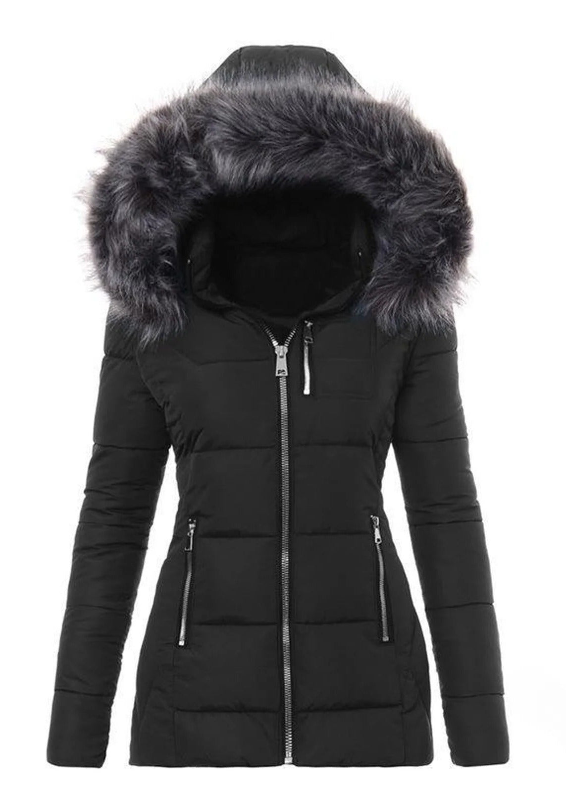 - Massima Protezione: Il cappuccio ampio, bordato da una folta pelliccia sintetica, assicura un isolamento termico eccellente per testa e collo.