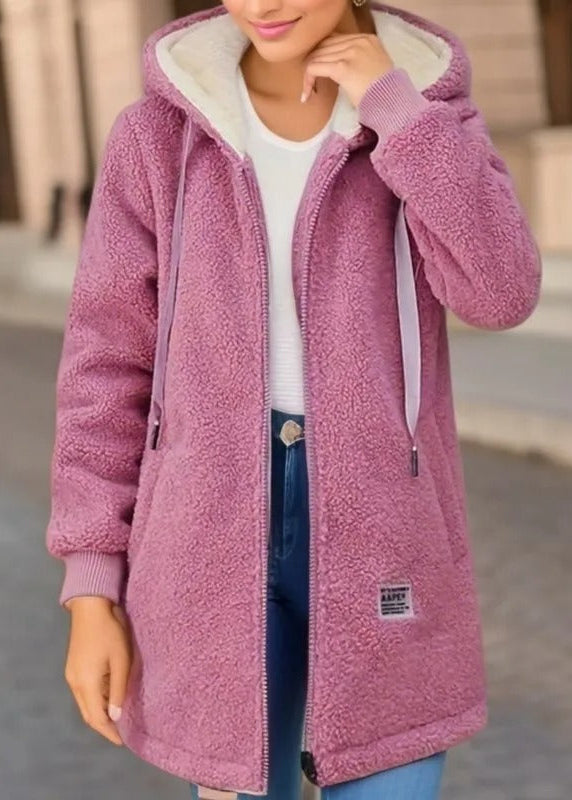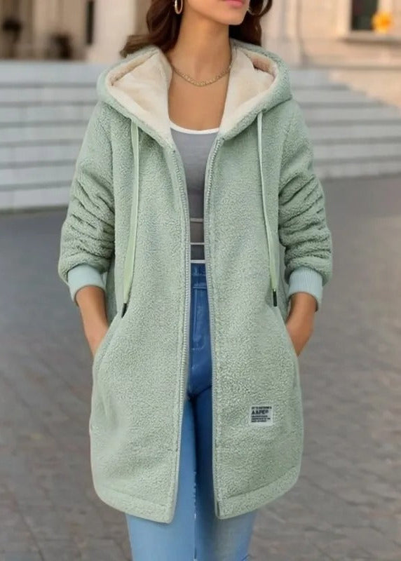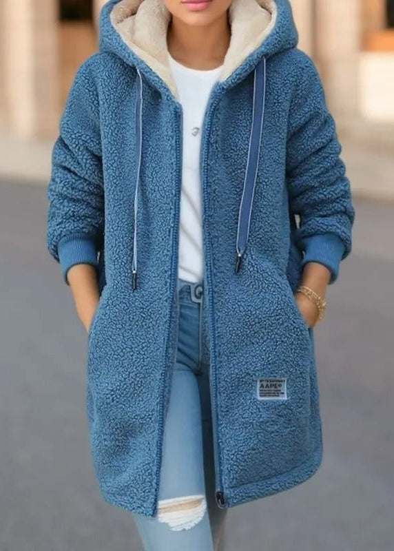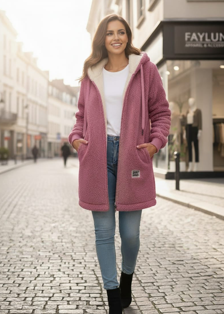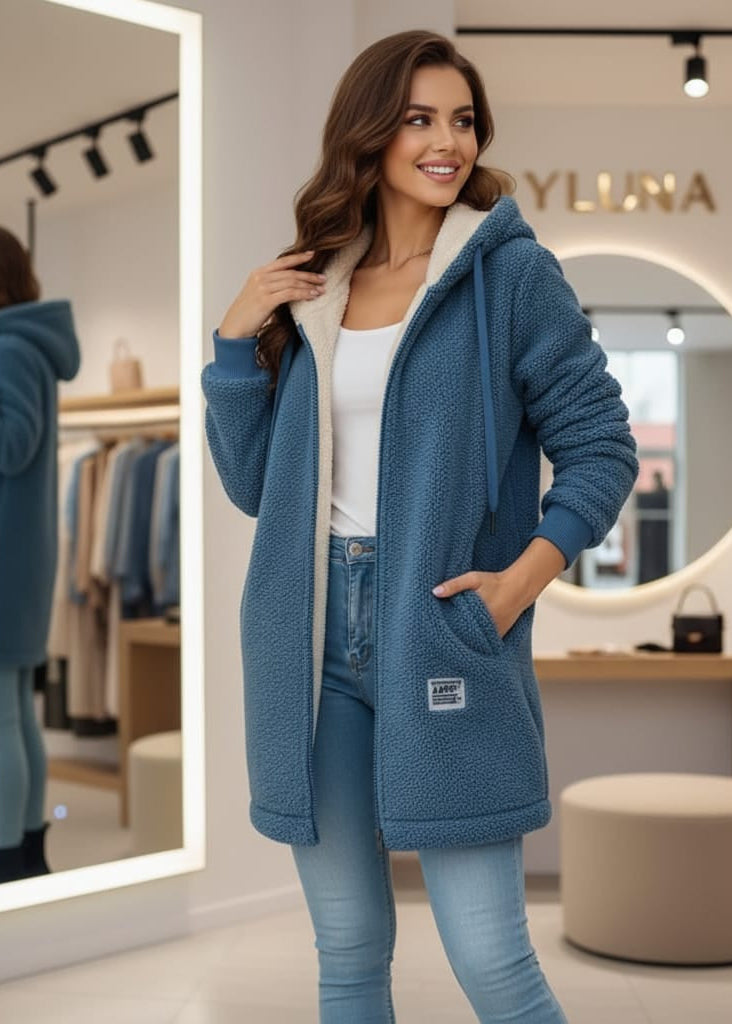 Preparati ad affrontare il freddo con la morbidezza che hai sempre sognato. Questa giacca lunga in tessuto teddy è la definizione di comfort e stile casual. L'interno foderato e il cappuccio generoso ti avvolgono in un calore incredibile, rendendola perfetta per i giorni più freddi. Un capo moderno e versatile, ideale per un look cozy e rilassato senza rinunciare alla moda