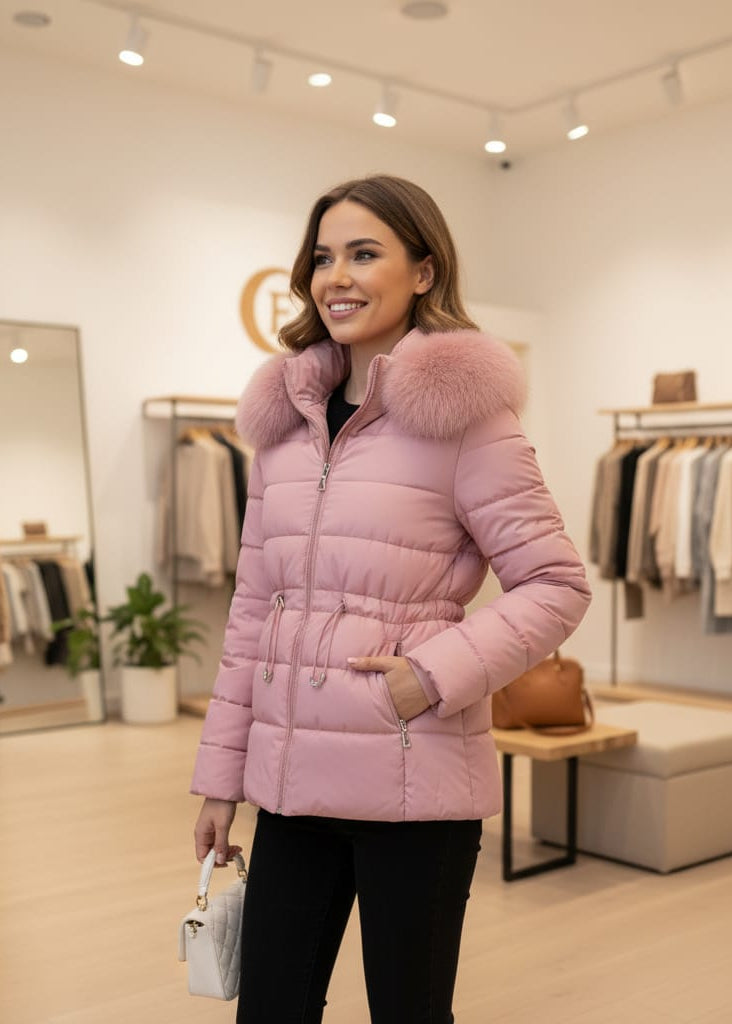 L'inverno non è mai stato così chic. Questo piumino unisce il massimo comfort termico a una silhouette ricercata e femminile. I dettagli di trapuntatura definiscono la figura, mentre il punto vita regolabile con coulisse permette una vestibilità personalizzata. Il cappuccio, rifinito da un'ampia pelliccia (ecologica) voluminosa, è il tocco di lusso per le tue giornate più fredde.
